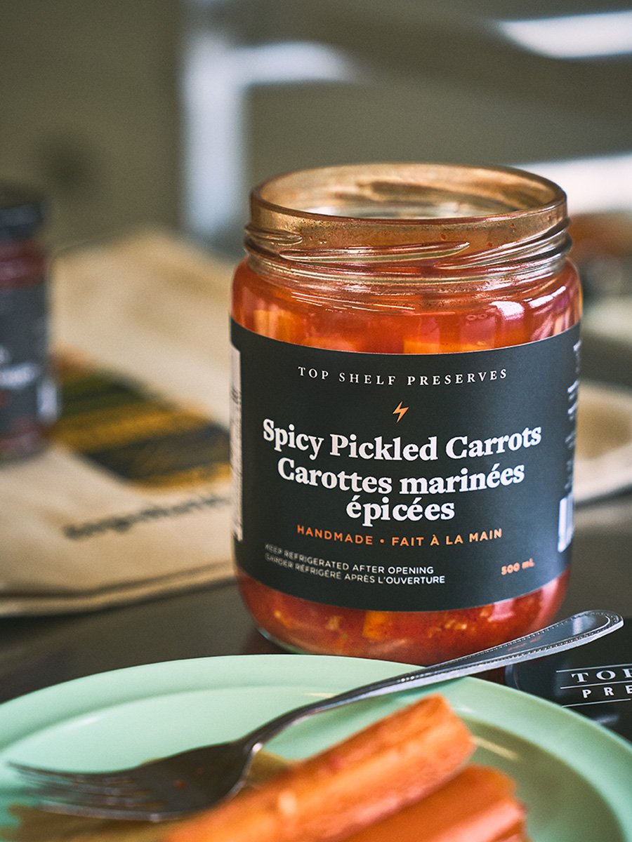 Crisp, sweet and spicy pickled carrots accented with local garlic and Korean chili. A bestseller!